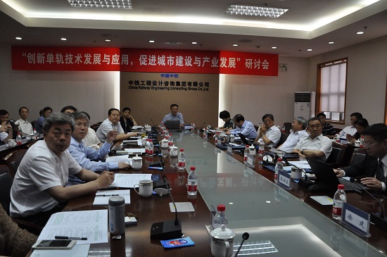 2018年6月22日,由中國中鐵“中國單軌交通發(fā)展研究中心”、中鐵設(shè)計(jì)集團(tuán)、中鐵設(shè)計(jì)集團(tuán)院士專家工作站主辦的 “創(chuàng)新單軌技術(shù)發(fā)展與應(yīng)用,促進(jìn)城市建設(shè)與產(chǎn)業(yè)發(fā)展”研討會在京召開。中國工程院聶建國院士、楊秀敏院士、梁文灝院士、杜彥良院士、王復(fù)明院士、陳湘生院士,中國中鐵股份有限公司副總裁、總工程師劉輝、中國機(jī)械工業(yè)集團(tuán)有限公司總經(jīng)理徐建、住房和城鄉(xiāng)建設(shè)部標(biāo)準(zhǔn)定額研究所處長雷麗英、山東大學(xué)副校長李術(shù)才、東北大學(xué)副校長馮夏庭、河海大學(xué)王媛院長、中鐵高新工業(yè)股份有限公司總經(jīng)理李建斌、中鐵科工集團(tuán)有限公司總經(jīng)理林承朝、中鐵設(shè)計(jì)集團(tuán)董事長、黨委書記李壽兵、總經(jīng)理王洪宇、總工程師陳紅念、市場總監(jiān)武農(nóng)等領(lǐng)導(dǎo)及技術(shù)負(fù)責(zé)人共50余人參加了會議。王洪宇總經(jīng)理主持會議。