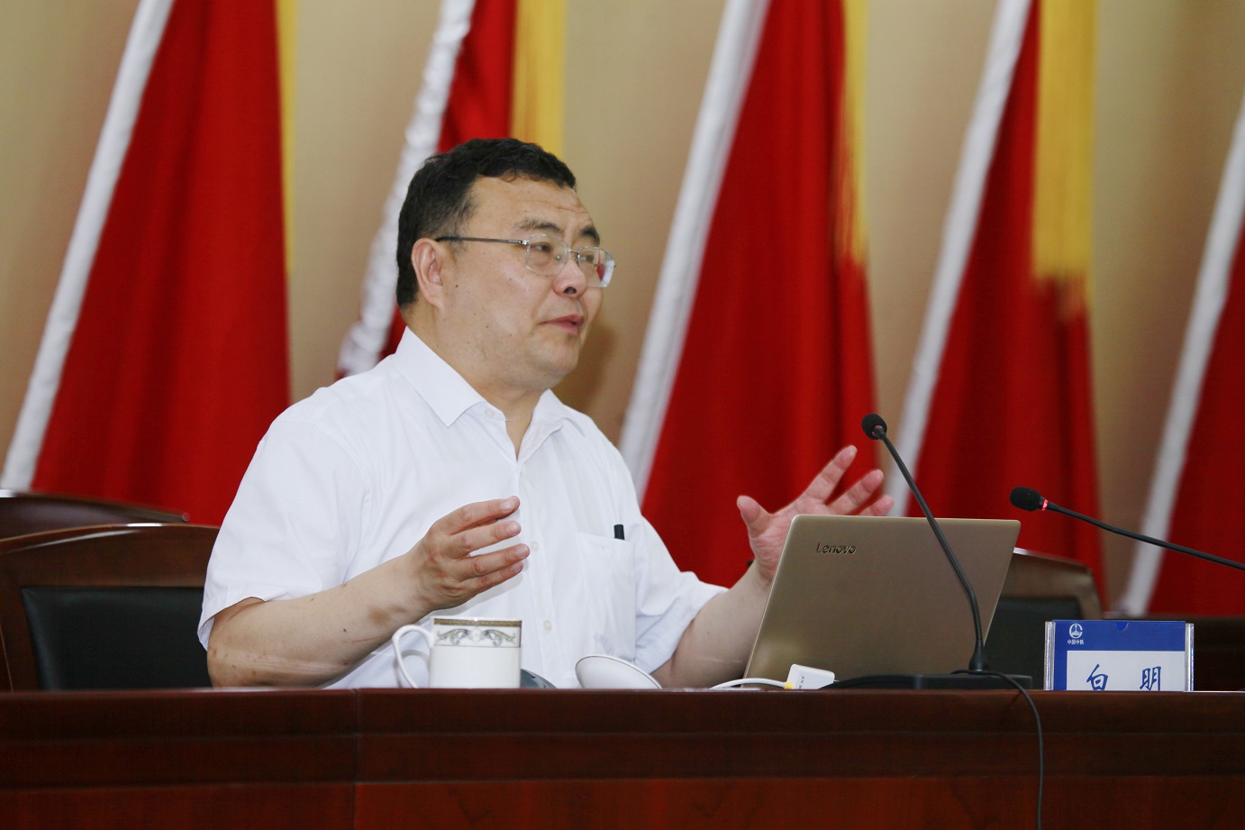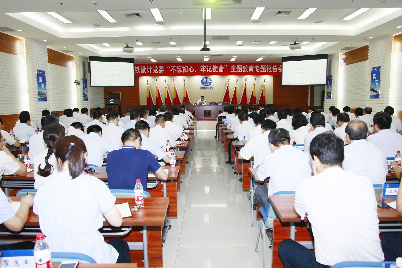 6月26日上午,中鐵設(shè)計集團黨委舉行“不忘初心,牢記使命” 主題教育專題報告會。邀請商務部國際貿(mào)易經(jīng)濟合作研究院國際市場研究所副所長、經(jīng)濟學博士、博士生導師白明同志做了關(guān)于中美經(jīng)貿(mào)摩擦有關(guān)內(nèi)容的專題輔導報告。集團黨委副書記、主題教育工作領(lǐng)導小組副組長吳俊誠主持報告會。集團公司黨委書記、董事長李壽兵,總經(jīng)理王洪宇,其他領(lǐng)導班子成員及高管出席報告會。本部機關(guān)各部門、各生產(chǎn)單位副處以上領(lǐng)導干部,紀檢監(jiān)察專兼職干部共計130余人參加專題報告會。