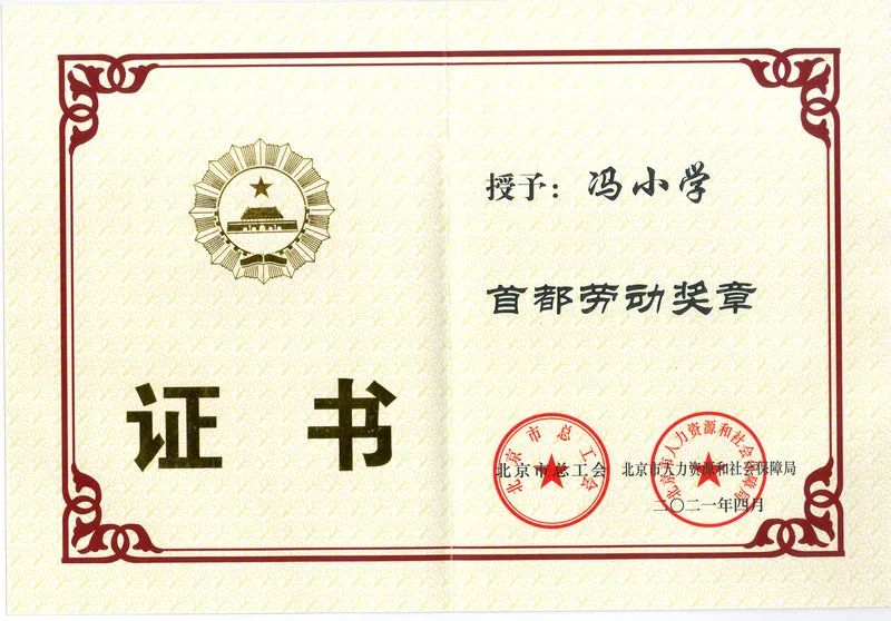 2021年獲北京市總工會、北京市人力資源和社會保障局授予的“首都勞動獎章”;