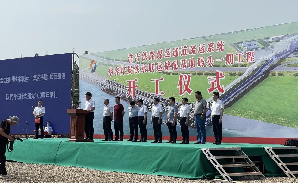 2021年6月25日9時18分,湖南省、岳陽市、陜西榆林能源集團(tuán)共同在長江岳陽港洪山頭作業(yè)區(qū)舉行了華容煤炭鐵水聯(lián)運(yùn)儲配基地碼頭一期工程的開工儀式,宣布浩吉鐵路華容煤炭鐵水聯(lián)運(yùn)疏運(yùn)項(xiàng)目全面開工,為建黨百年獻(xiàn)禮。自此,華容煤炭鐵水聯(lián)運(yùn)鐵路專用線工程掀開了全面動工的新篇章。中鐵設(shè)計線站院院長岳春明出席,副院長裴春明及院華容鐵路專用線總承包項(xiàng)目部全體人員參加開工儀式。