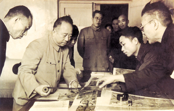 首任鐵道部部長滕代遠(yuǎn)、副部長武竟天視察鐵路航測工作(1957年9月27日)