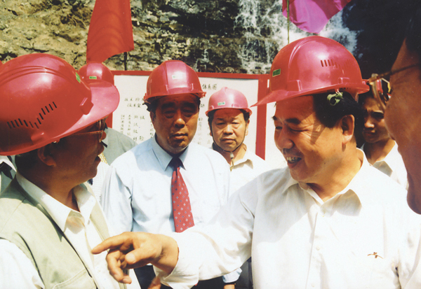 原鐵道部部長傅志寰視察內(nèi)昆鐵路時(shí)同公司監(jiān)理人員親切交談