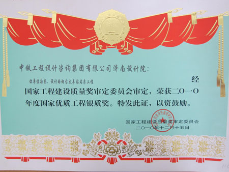2010年12月23日,在北京人民大會堂召開的確保國家重點工程質量創建國家優質工程表彰大會上,煙臺火車站站房工程榮獲國家優質工程獎銀質獎。