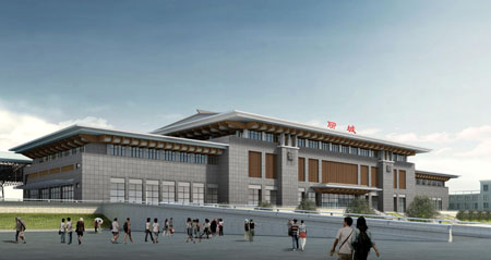 聊城地處經(jīng)濟(jì)發(fā)達(dá)的山東省,居魯西,臨河南、河北,京九鐵路、邯濟(jì)鐵路在此交匯。聊城站設(shè)計(jì)旅客最高聚集人數(shù)2500人,為中型旅客車站。站房總建筑面積14950㎡,南北長(zhǎng)164.8m,東西寬43.4m,共三層,總高度28.9m。建筑造型取意于聊城的象征——光岳樓,左右對(duì)稱的布局、精細(xì)的雙重屋檐、厚重的墻體、古樸的色彩,使得整個(gè)站房雄渾、穩(wěn)重,并富有傳統(tǒng)韻味,體現(xiàn)了 “運(yùn)河古都”聊城的城市特色。