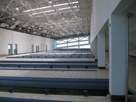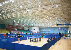 ③籃球及蕩槳訓練館: 建筑面積:7500m2,館內4個籃球場,130人室內蕩槳訓練館;最大跨度46.8m。