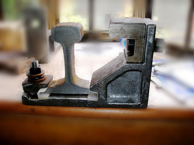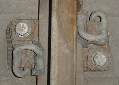 防脫護軌裝置  特點:該護軌支架采用鑄鋼材料,強度高、耐腐蝕性能好。該產品與鋼軌之間設置絕緣,可在既有線及新建城市軌道交通的各種軌道結構上安裝使用。