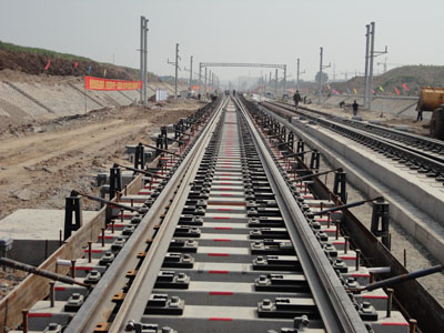 地鐵用新型高彈扣件   特點:該扣件是專門為地鐵開發的無螺栓彈性分開式扣件,板下墊板采用高彈材料,在保證安全性的前提下,相比傳統地鐵用普通扣件,大大提高了軌道彈性、減振性能和使用壽命,并且不增加軌道高度,可與傳統地下線扣件換鋪使用;同時,增大了軌距調整量,簡化了結構,方便施工,可降低施工和運營成本。該產品已應用在北京、廣州、上海等城市軌道交通工程。