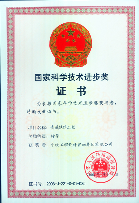 青藏鐵路獲國家科學(xué)技術(shù)進(jìn)步獎特等獎